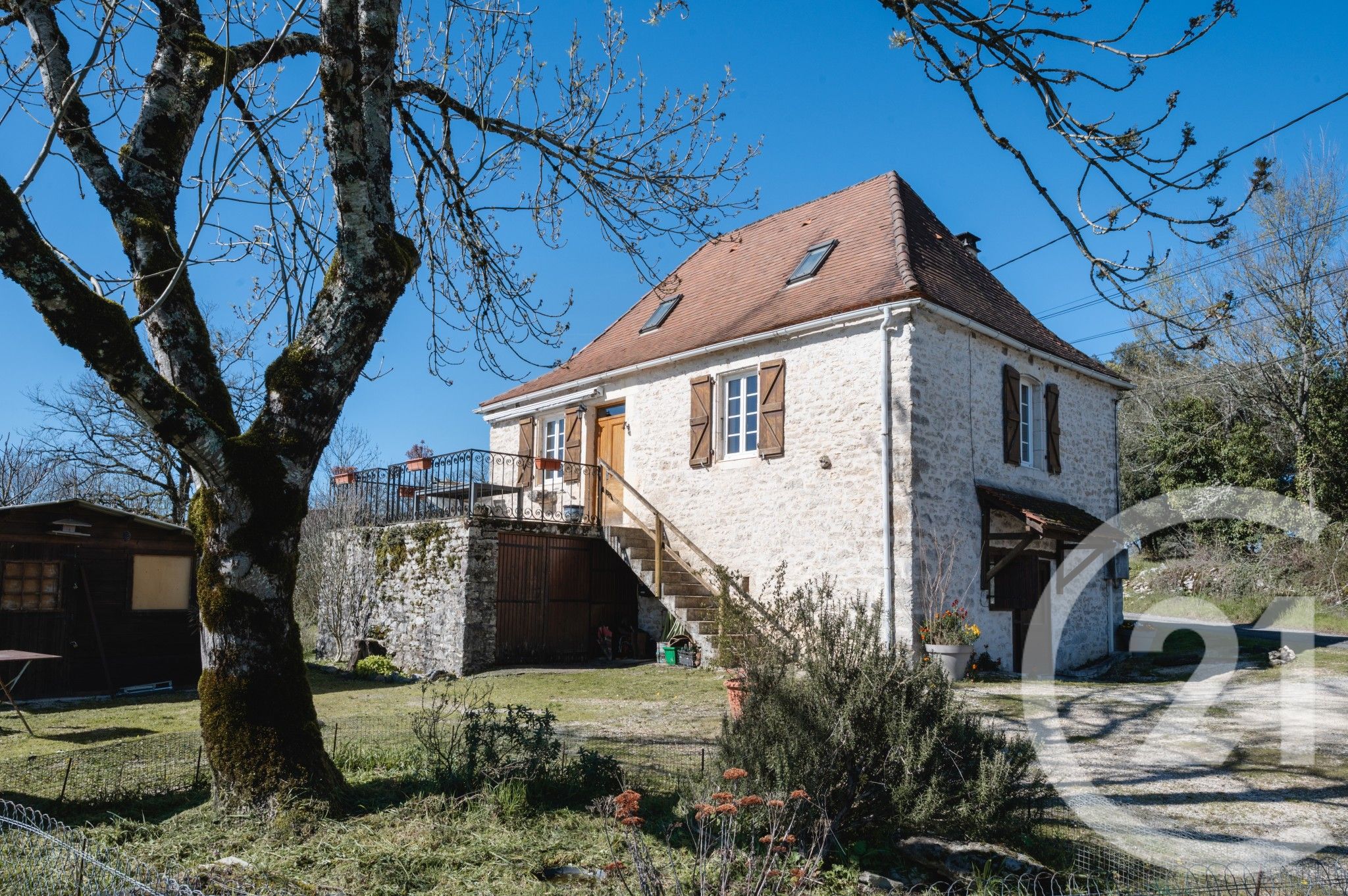 Pour le rangement, la maison possède un petit garage, idéal pour un atelier, ainsi qu'un cabanon en bois sur dalle béton.